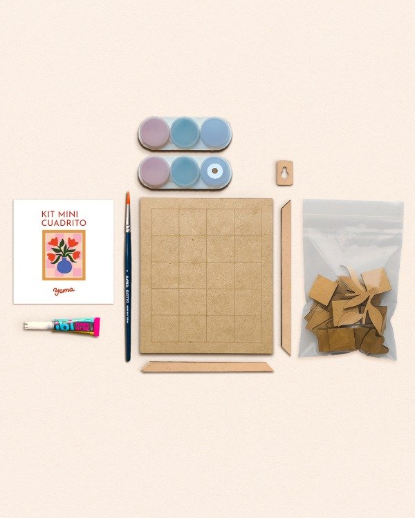Si te gusta la pintura pero también te divierte armar cosas, el Kit Mini Cuadrito DIY es para vos. Cada diseño está grabado sobre una base de melamina y viene con piezas de MDF para que las pintes por separado y luego las pegues, creando un efecto de relieve simple y hermoso. El tamaño final del mini cuadrito es de 14,5m de ancho x 17cm de alto, ideal para decorar cualquier rincón o regalar.